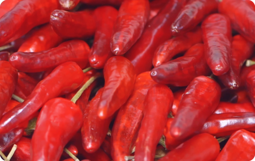 不是所有的辣椒都夠資格—— 我們只取日照充足,辣而不燥,皮厚,色沉如鐵的‘朝天椒’!
